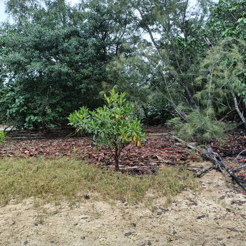 マングローブ林の中では、あちらこちらから顔を出すオヒルギの膝根を傷付けないように注意し、低く張りめぐらされた枝やアダンのトゲトゲの葉に苦戦しながらも、皆さんそれぞれに工夫しながら丁寧にゴミを回収しました。自然と役割分担がされ抜群なチームワークを発揮し、あきらめてしまいそうな複雑にマングローブに絡みついた大物ロープも、力をあわせて取り除きました。作業が終わる頃には、なんとトン袋19袋のゴミが集まり、一部ではありますがマングローブ林が本来の姿を取り戻しました。